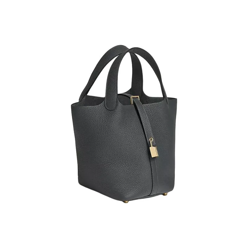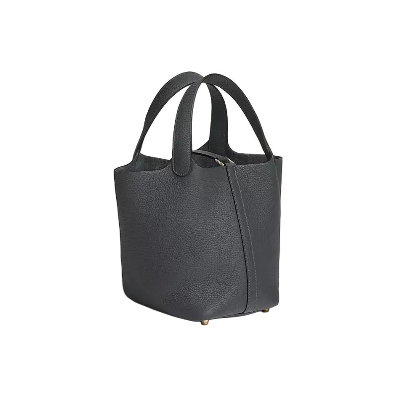 HERMES Picotin Lock Clemence Bullock Кожа Корзина Сумка Ведрообразная Сумка Женская Сумка H0 Misty Серый