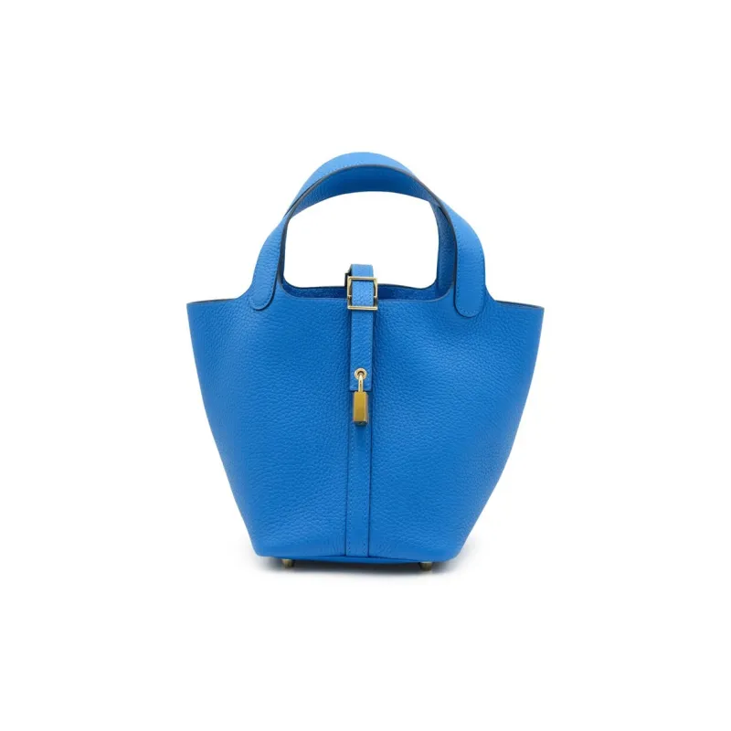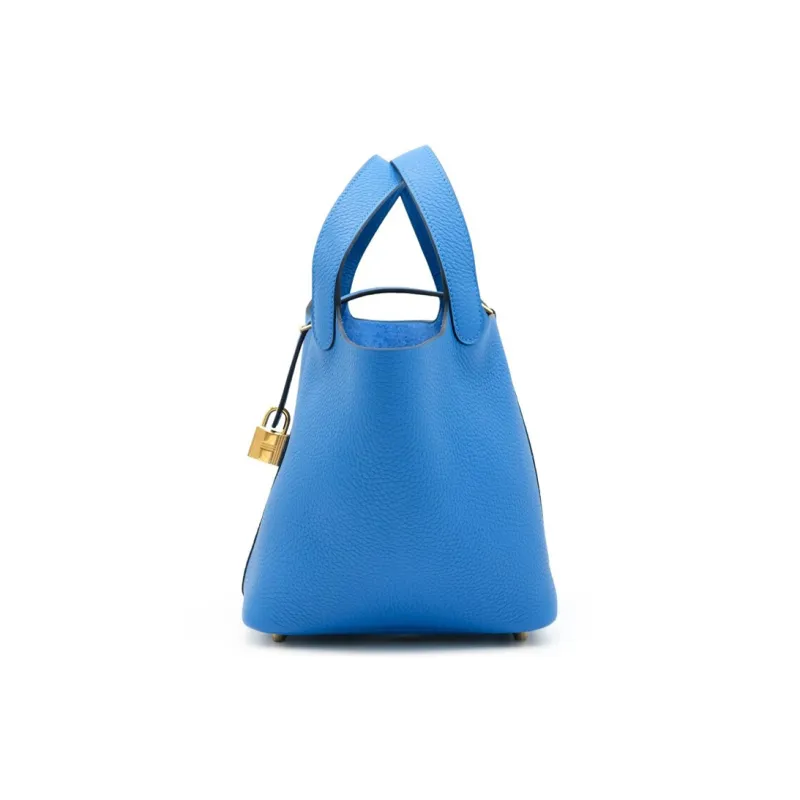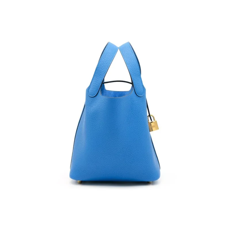 HERMES Picotin Lock Clemence Bullock Кожа Корзина Сумка Сумка-ведро Женская Сумка I7 BLEU Zellige Mosaics Синий