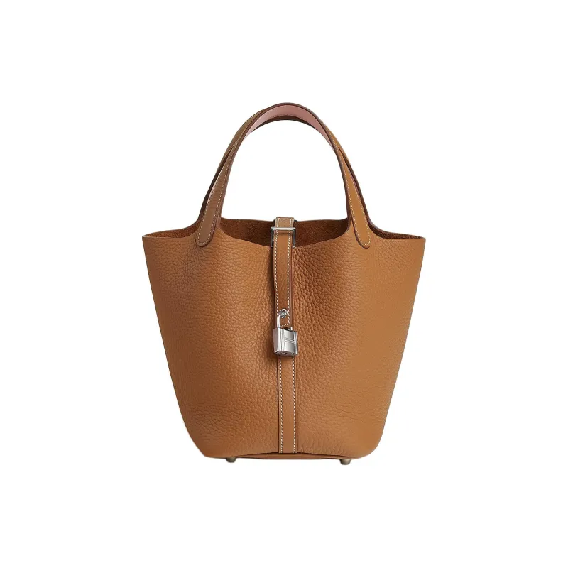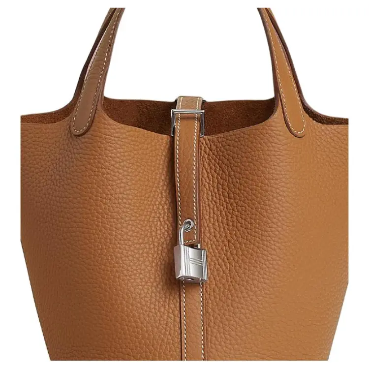 HERMES Picotin Lock Clemence Кожа с Swift Телячья кожа Корзина Сумка Сумка-ведро Сумка Женская Золотисто-коричневая