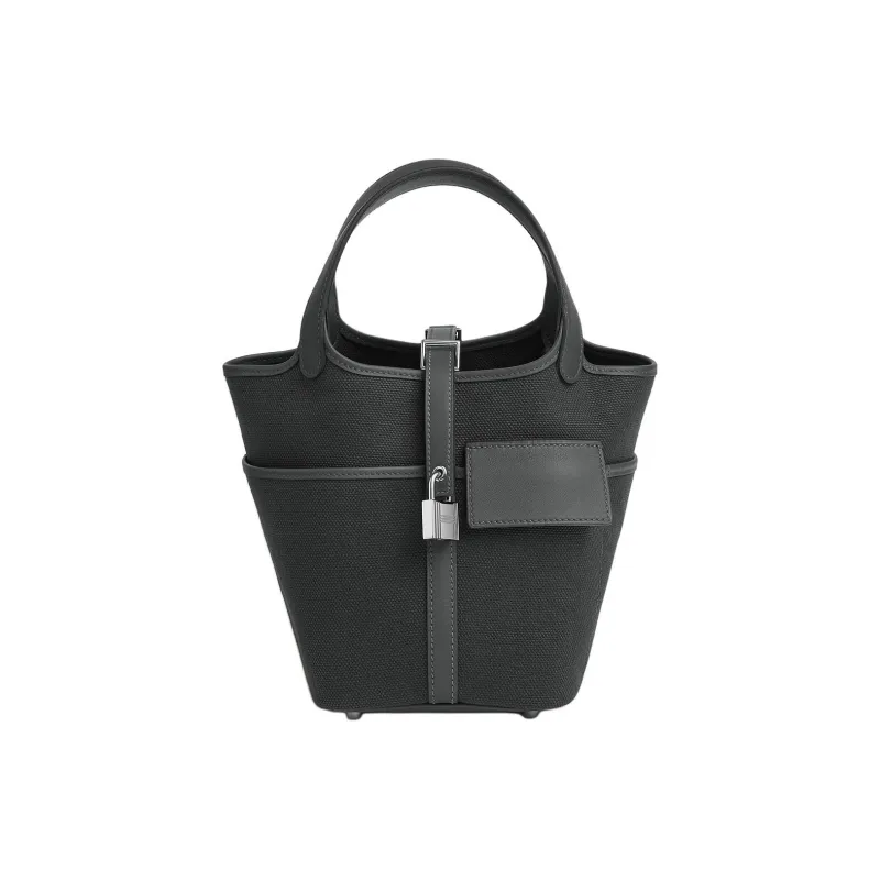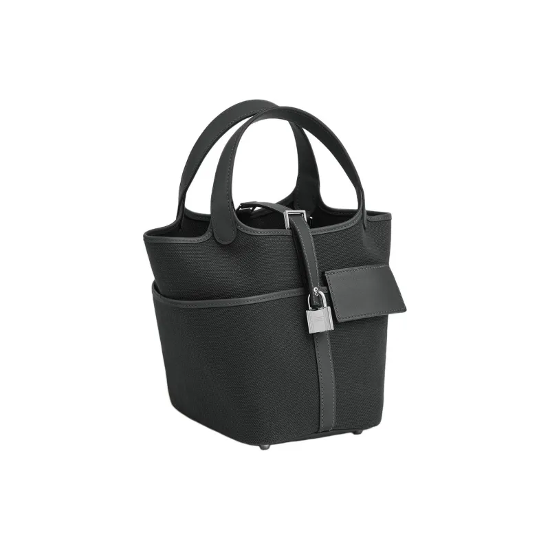 HERMES Picotin Lock Goeland Холст Swift Телячья кожа Корзина Сумка Сумка Женская Пыльно-серый
