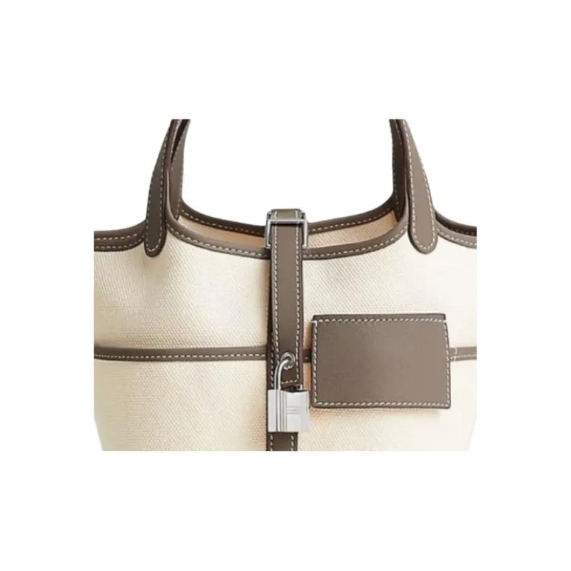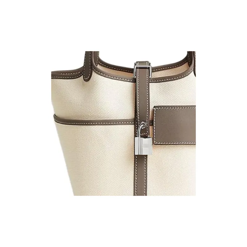 HERMES Picotin Lock Goeland Холст Swift Телячья кожа Корзинка Сумка Сумка-ведро Сумка Женская