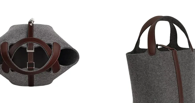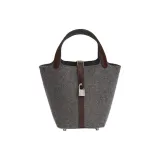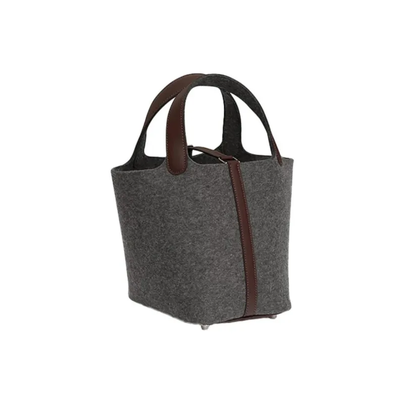 HERMES Picotin Lock Шерстяной войлок с Swift Телячья кожа Корзинка-сумка Сумка-ведро Сумка 18 Женская Серый Коричневый