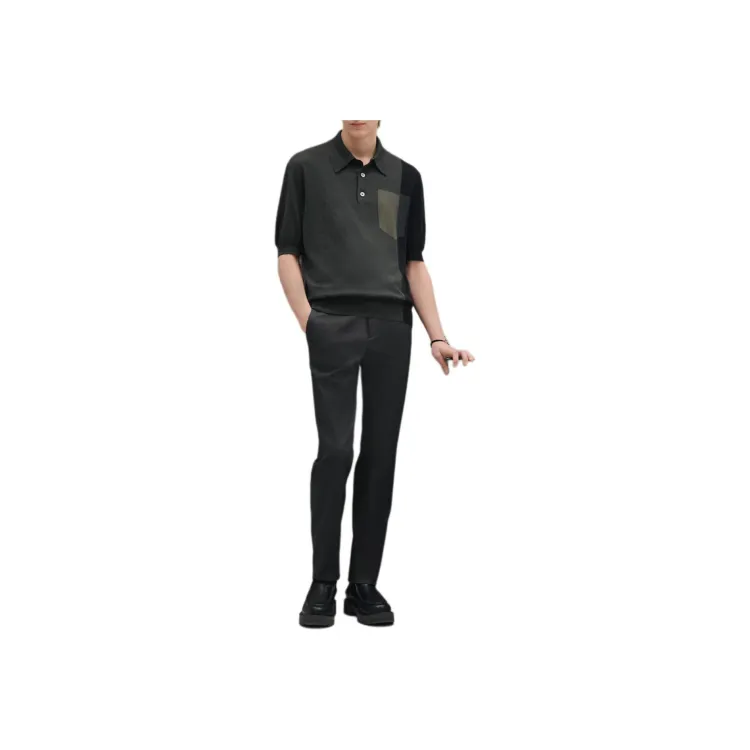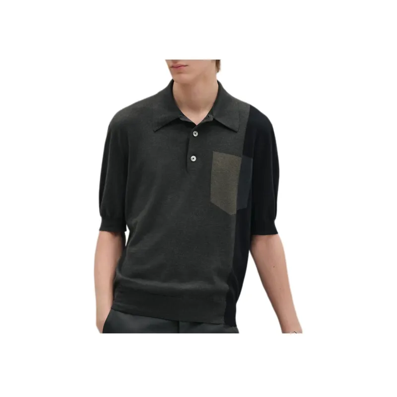 HERMES Мужская поло серого и зеленого цвета