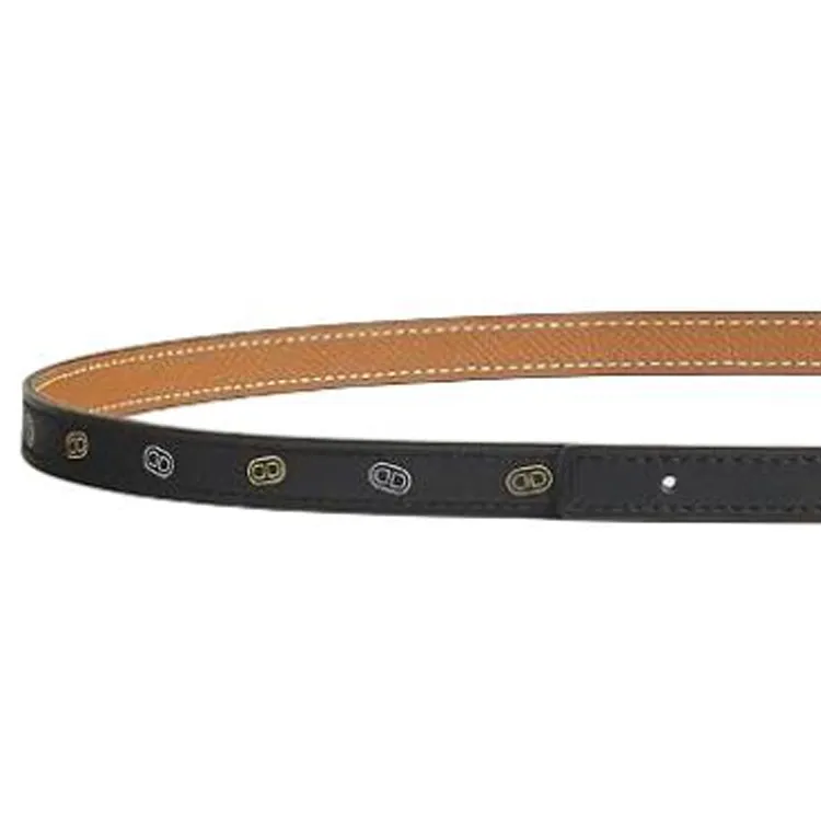 HERMES Принт Дизайн Телячья кожа Кожаные ремни Женские Черный Золото Ширина 1,3 см