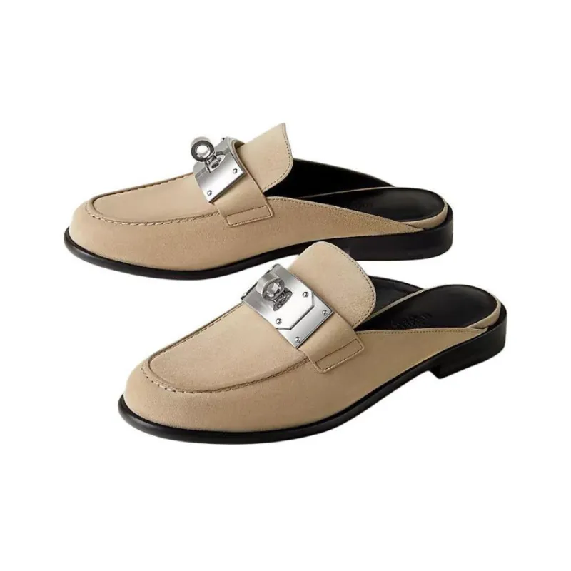 HERMES Резиновая подошва Домашние тапочки Женские CAMEL