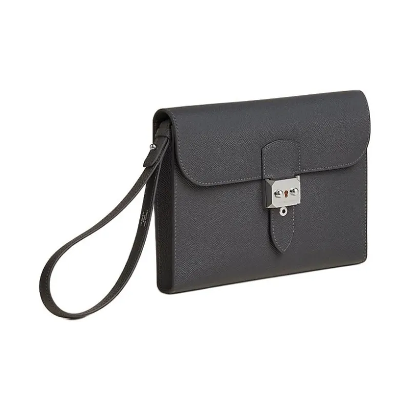 HERMES Sac A Depeches Epsom Телячья кожа Клатч Мужской 85 Ardoise Темно-сланцево-серый