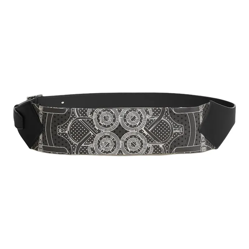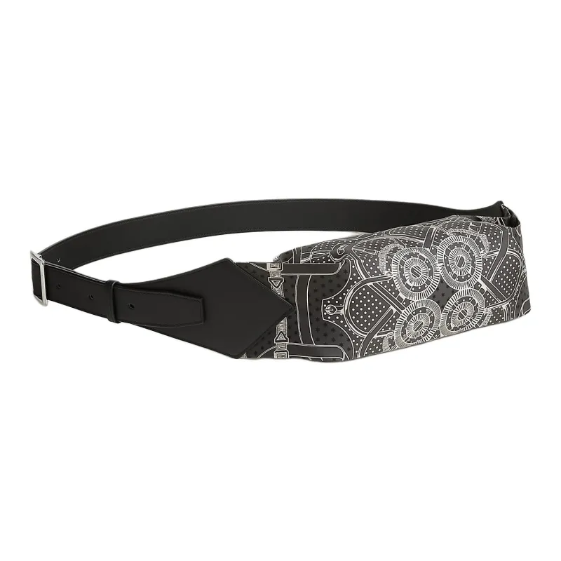 HERMES Шелк с Swift Телячья кожа Бананка Мужской Серый и черный
