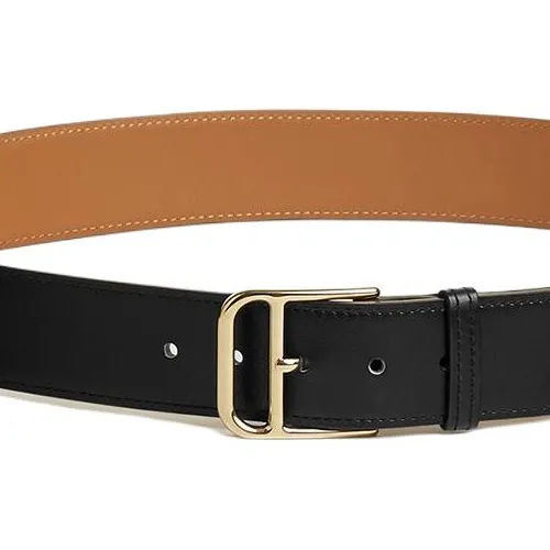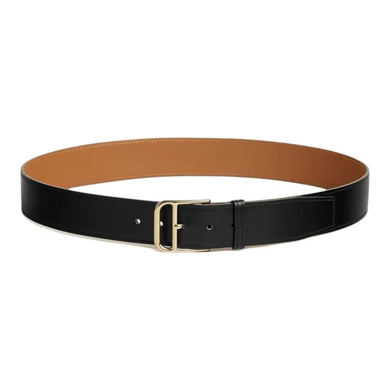 HERMES Однотонный украшение булавка кожа ремни мужской черный ширина 3,5 см