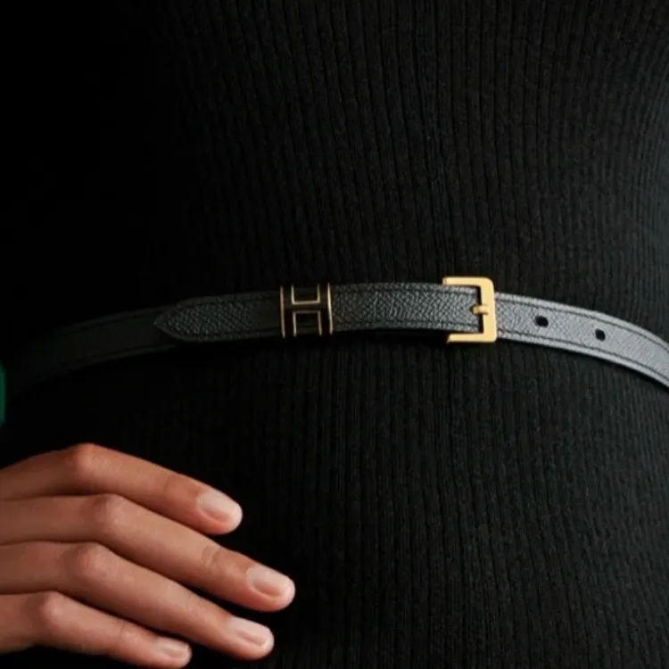 HERMES Однотонный дизайн застежка-булавка кожаные ремни женский черный