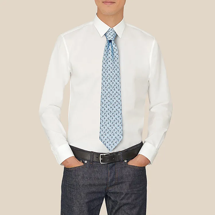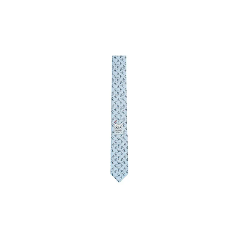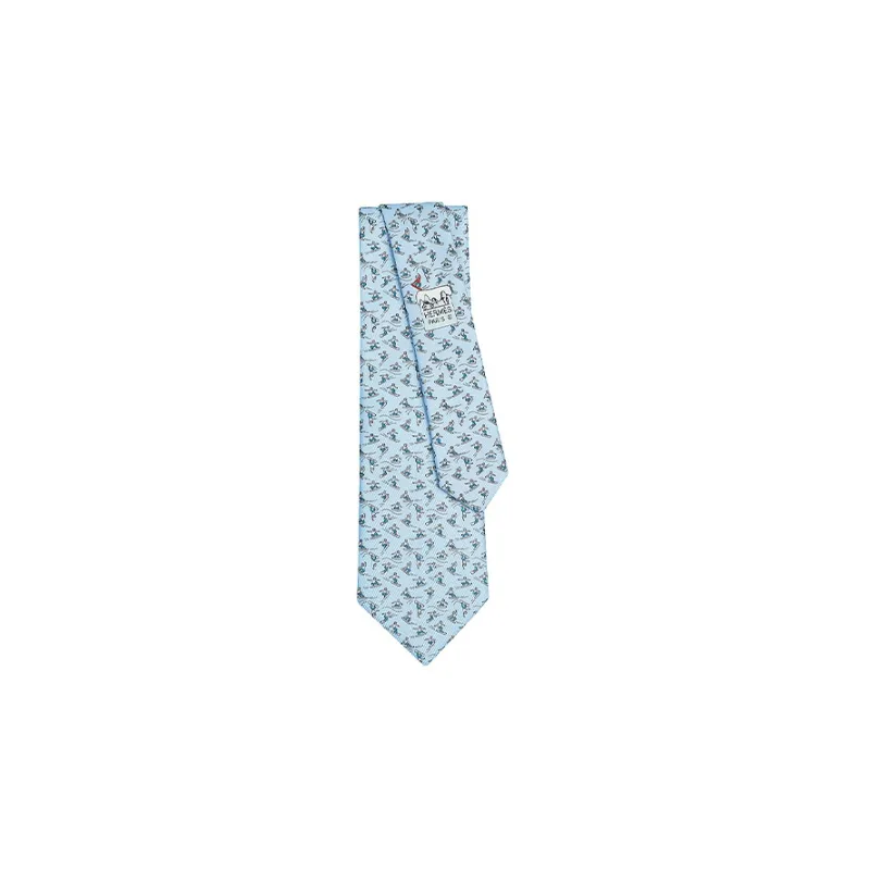 HERMES Шелковые галстуки Небесно-голубой/Темно-серый/Светло-серый Мужской