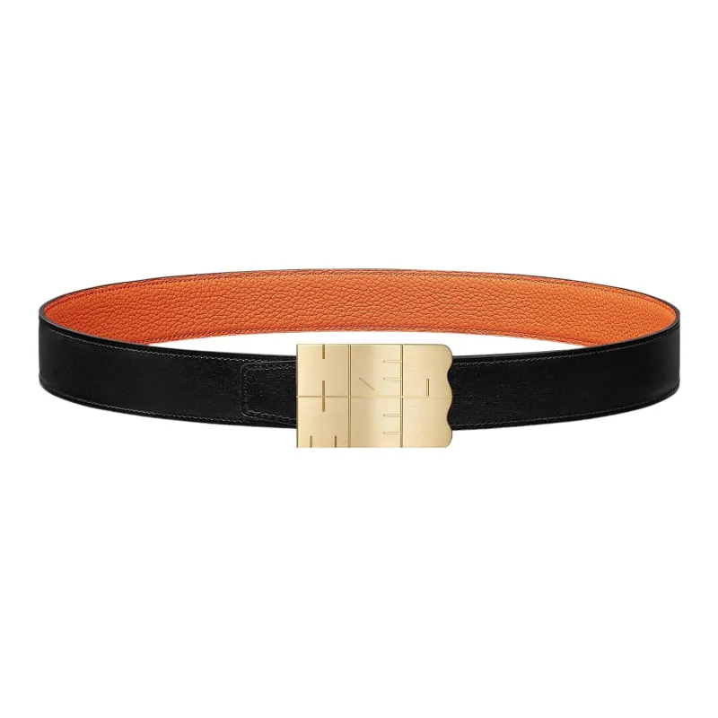 HERMES Togo Ремни из коровьей кожи Мужской Черный Оранжевый Ширина 3,2 см