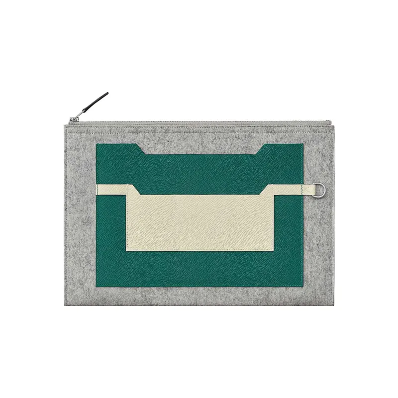 HERMES Toodoo Шерстяной войлок с Epsom Телячья кожа Клатч Мужской Серый Зеленый