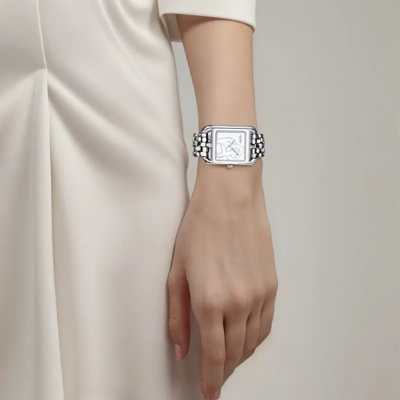 HERMES Cape Cod Collection Женские часы Кварцевый механизм Ремешок из нержавеющей стали 31*23 мм Белый циферблат