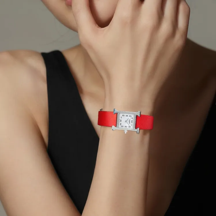 HERMES Heure H Collection Часы Кварцевый механизм Естественная кожа Ремешок 17,2 мм Красный циферблат