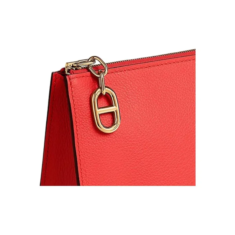 HERMES Zipengo Evercolor Телячья кожа Косметичка Женская 9T Capucine Оранжево-красный