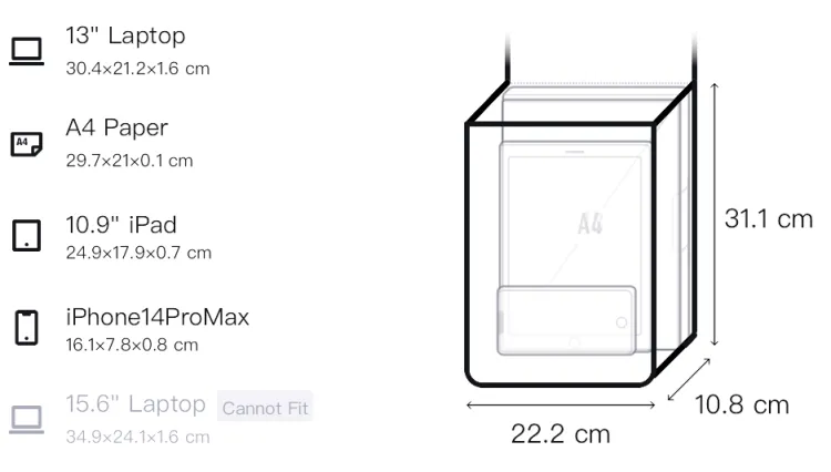 Д22,2*Ш10,8*В31,1 см
