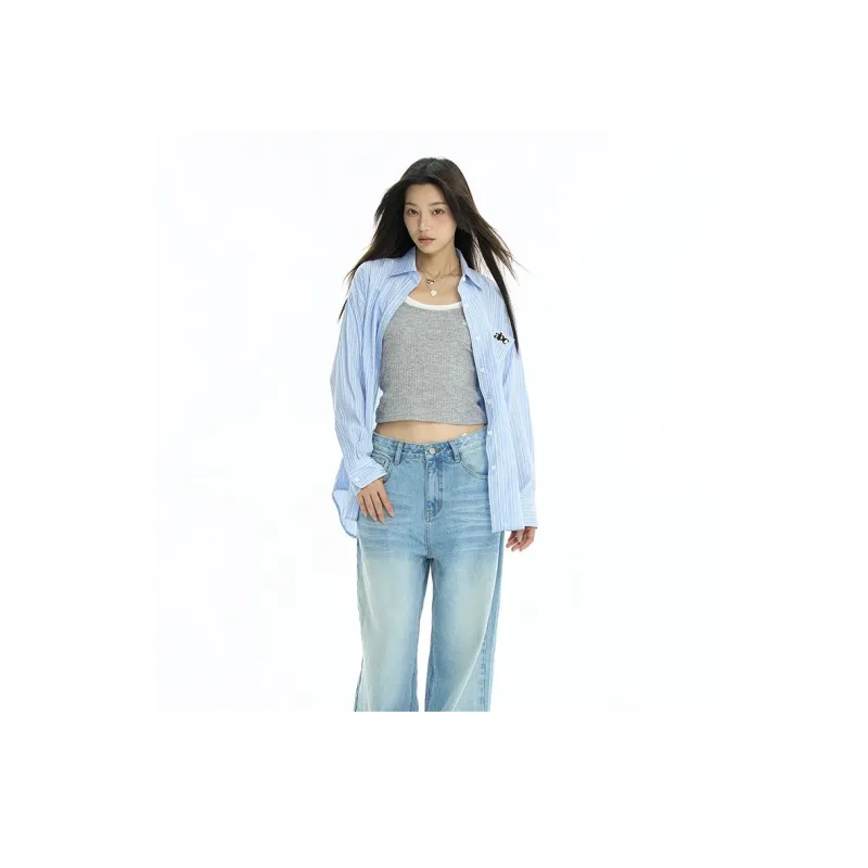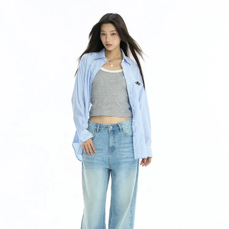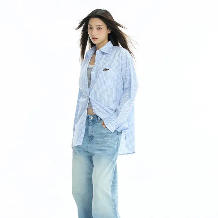 HEYABC Небесно-голубые Женские Рубашки