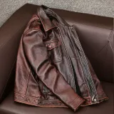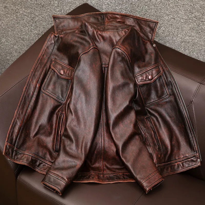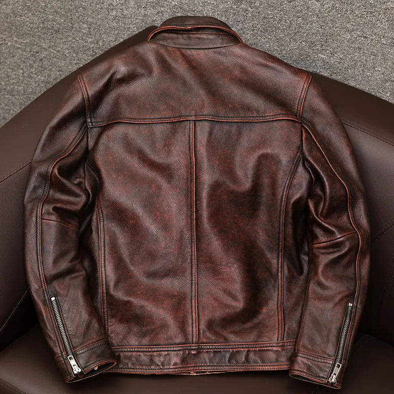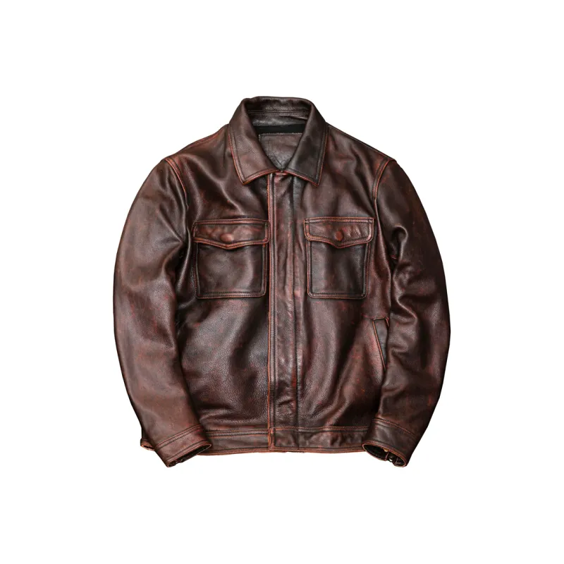 HJ Красный Коричневый Мужская Кожаная Куртка
