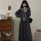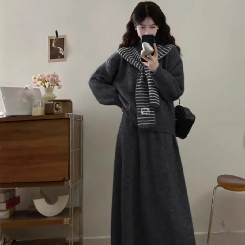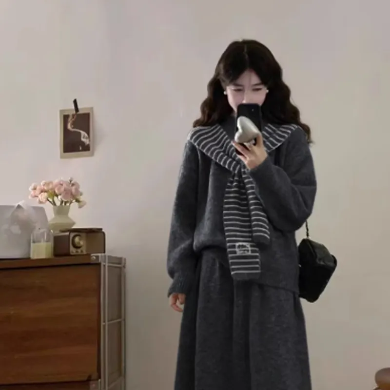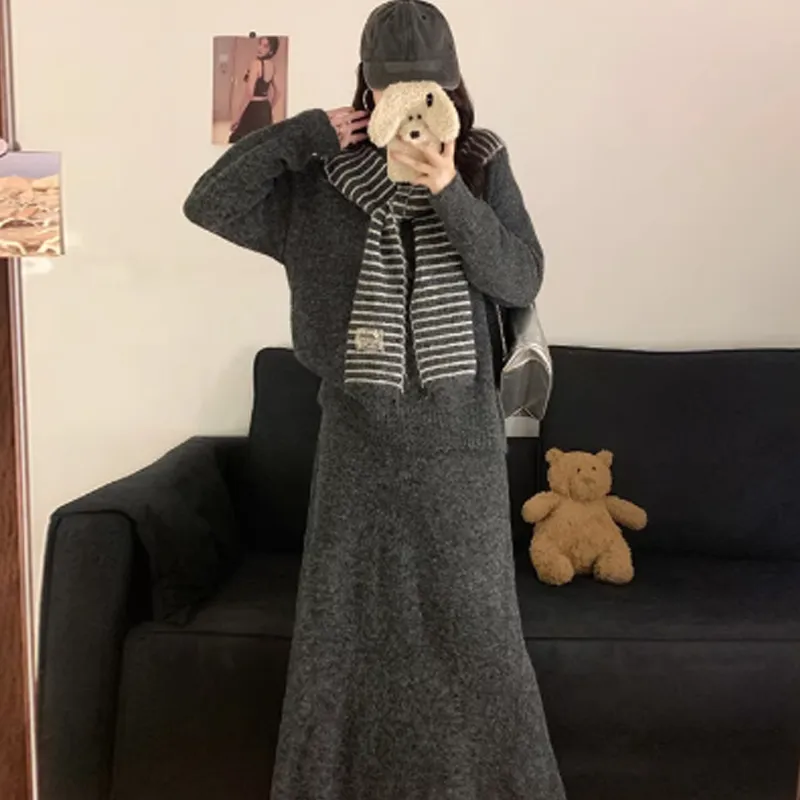 Комплект:Темно-серый топ + темно-серый кардиган + полосы