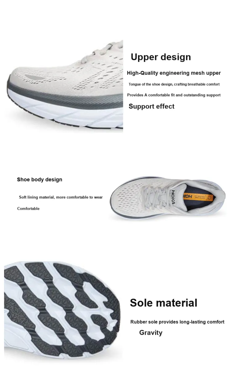 HOKA ONE ONE Clifton 8 Амортизация Низкий Топ Беговые кроссовки Мужской Серый