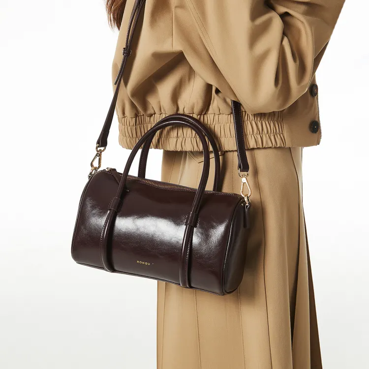 HONGU Корова Кожа Синтетическая Кожа Сумка Стандартная Женская Темно-Черный Экрю Бургунди