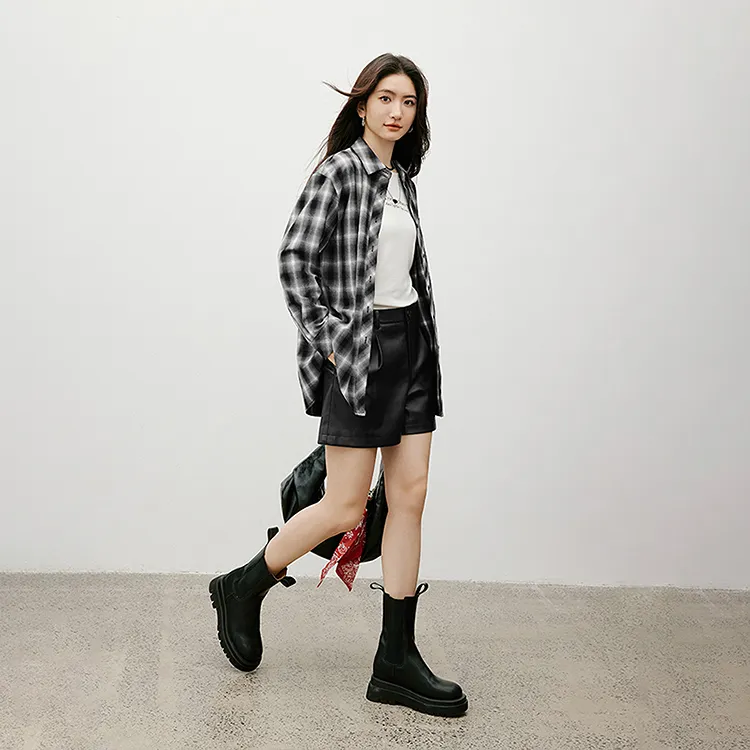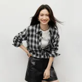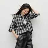 Hopeshow Черный Lining Fabric Белый Клетка 901 Женская Рубашка