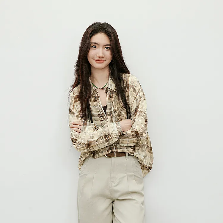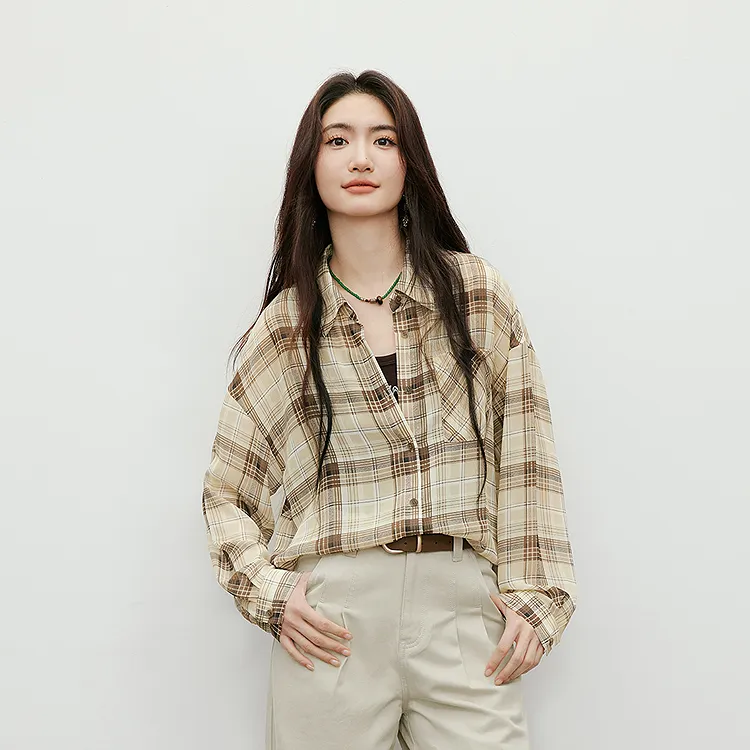 Hopeshow Кофейная клетка 918 Женские рубашки