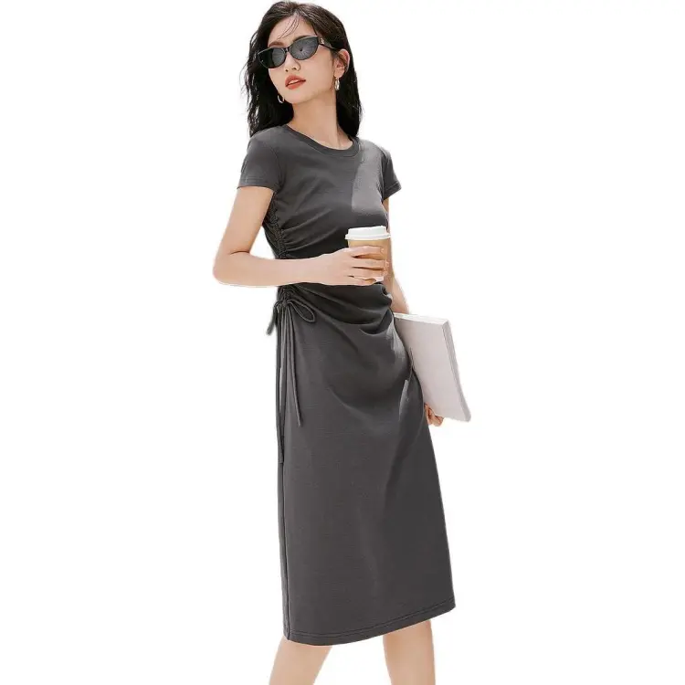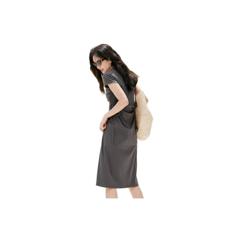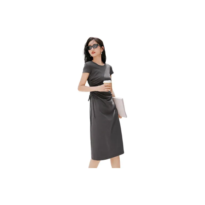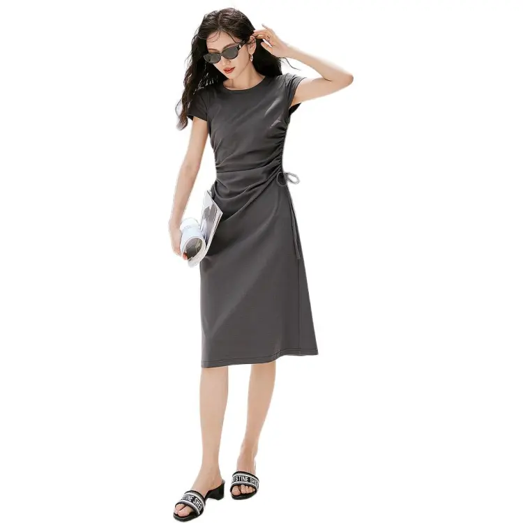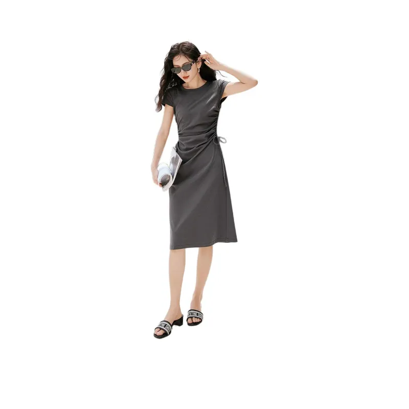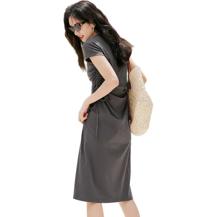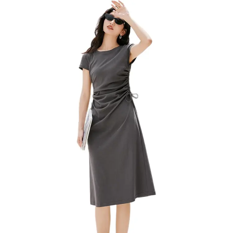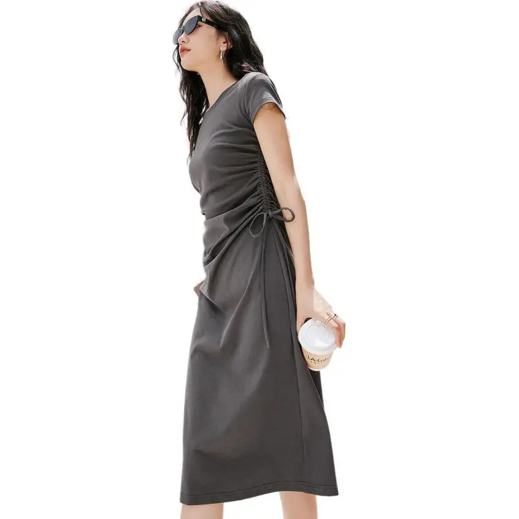 Hopeshow Короткий рукав Платье Женское Премиум серый