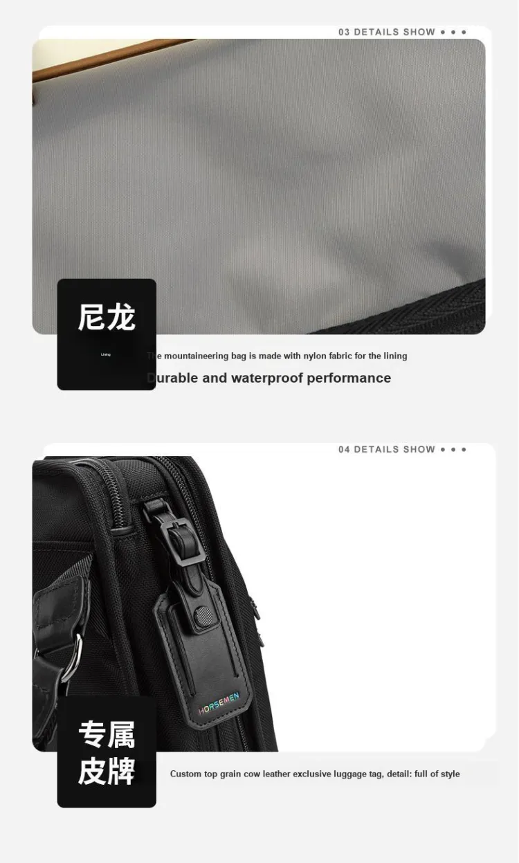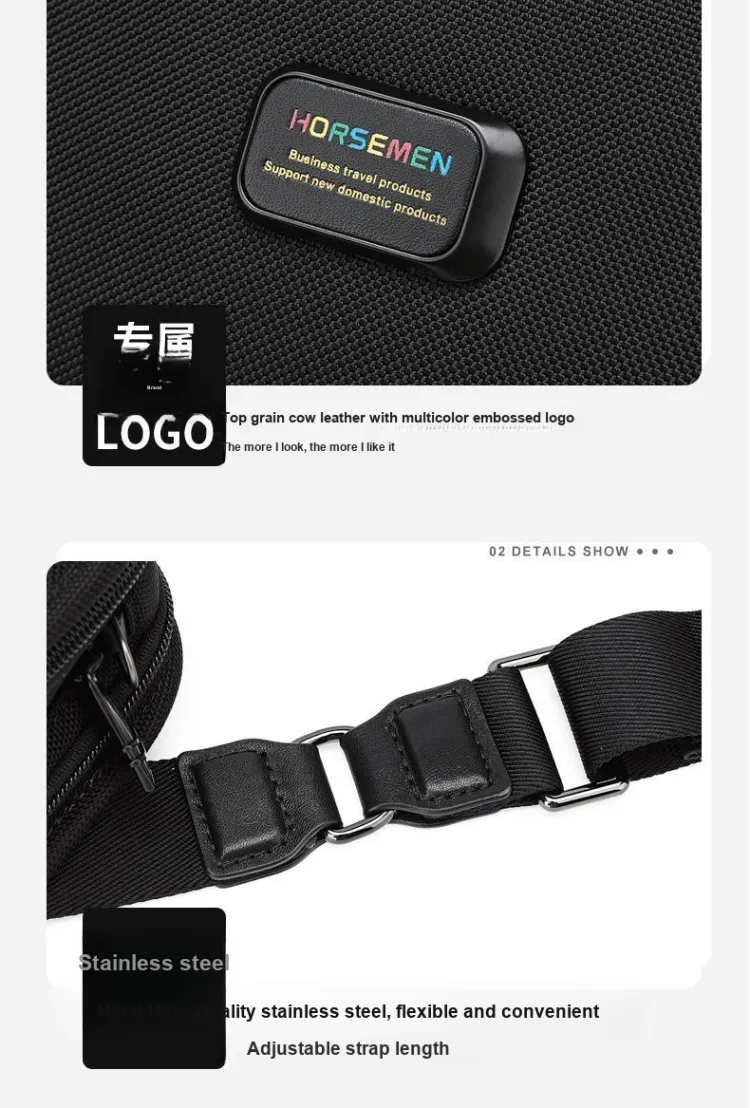HORSEMEN Нейлон с коровьей кожей деловой повседневный стиль сумка через плечо плечевая сумка средний размер мужская черная