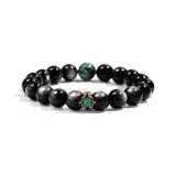 Горячее настоящее серебро здание Серебряный SHEEN Обсидиан Зеленый Дракон Кристальный Браслеты Мужской