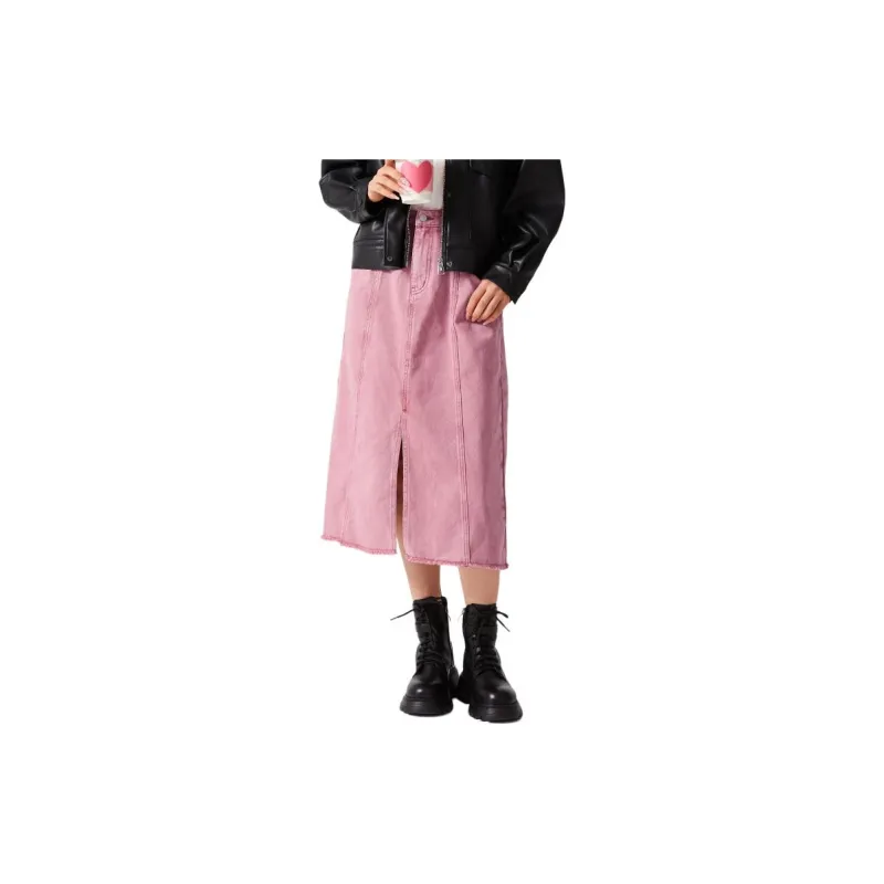 Hotwind Denim Long Skirt Women's Pink