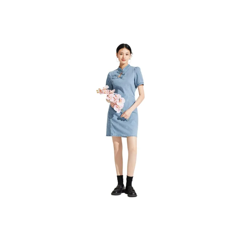Hotwind Короткий рукав Платье Женское Синий