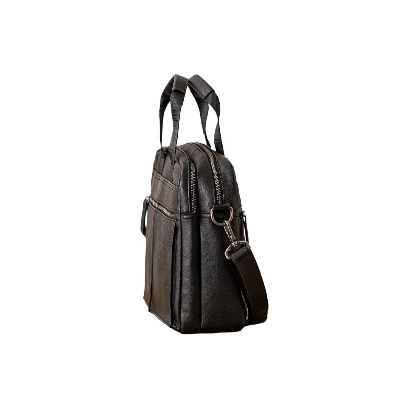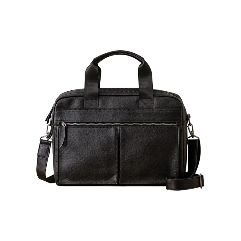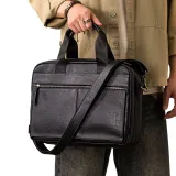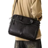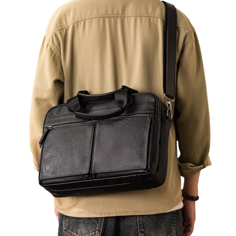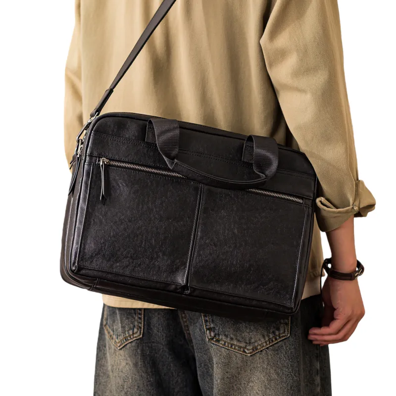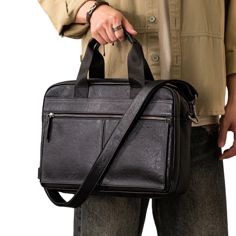 HOUBU Растительное дубление крупнозернистая текстура кожа коровы сумка большая мужская черная