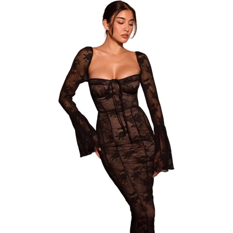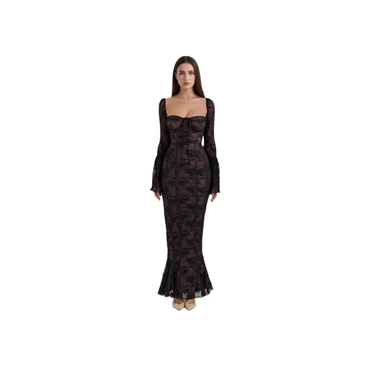 HOUSE OF CB Delilah Длинное платье с длинными рукавами женское черный черный