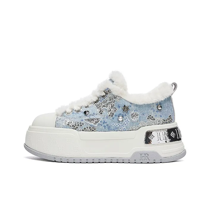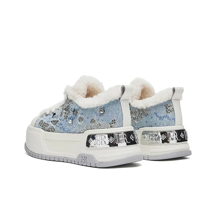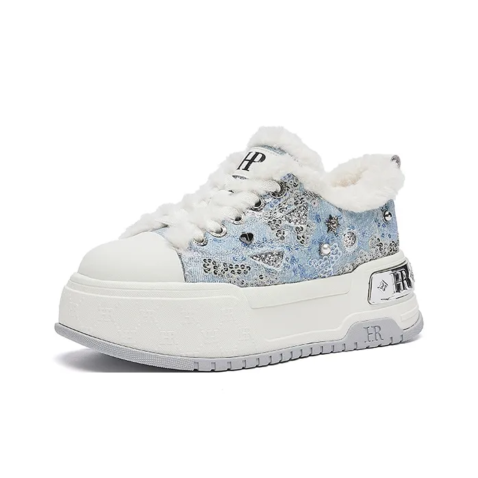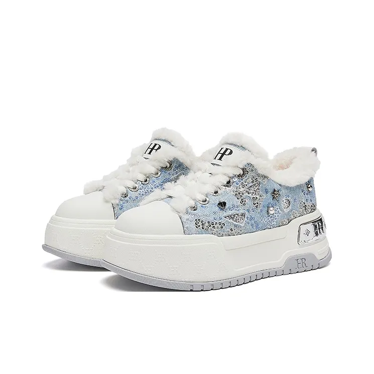 HR Скейтборд Кроссовки Низкие Бежево-Синие Женские