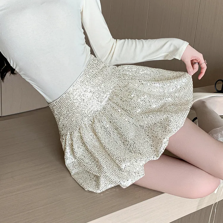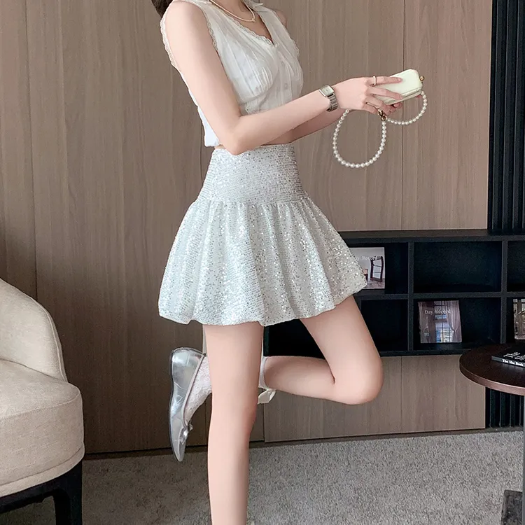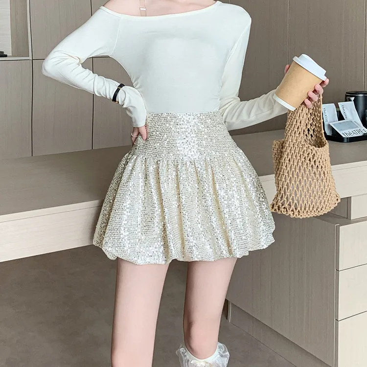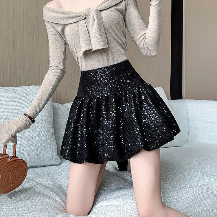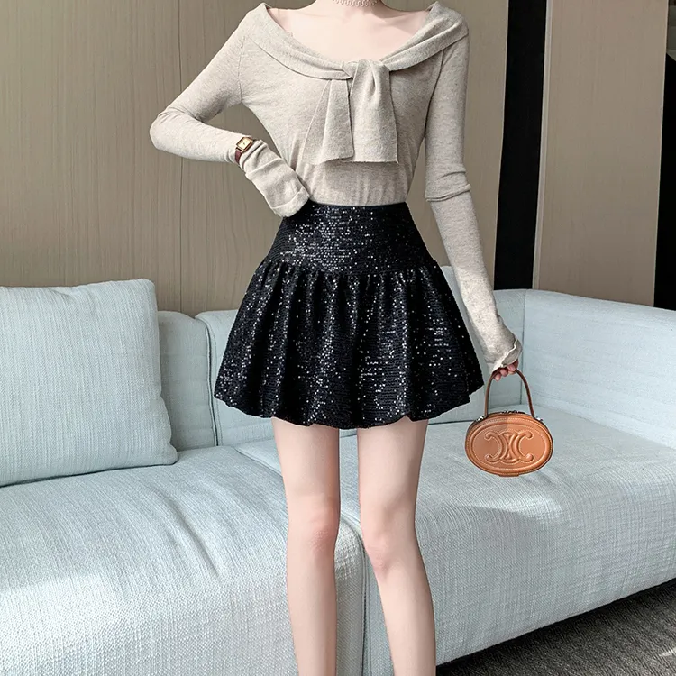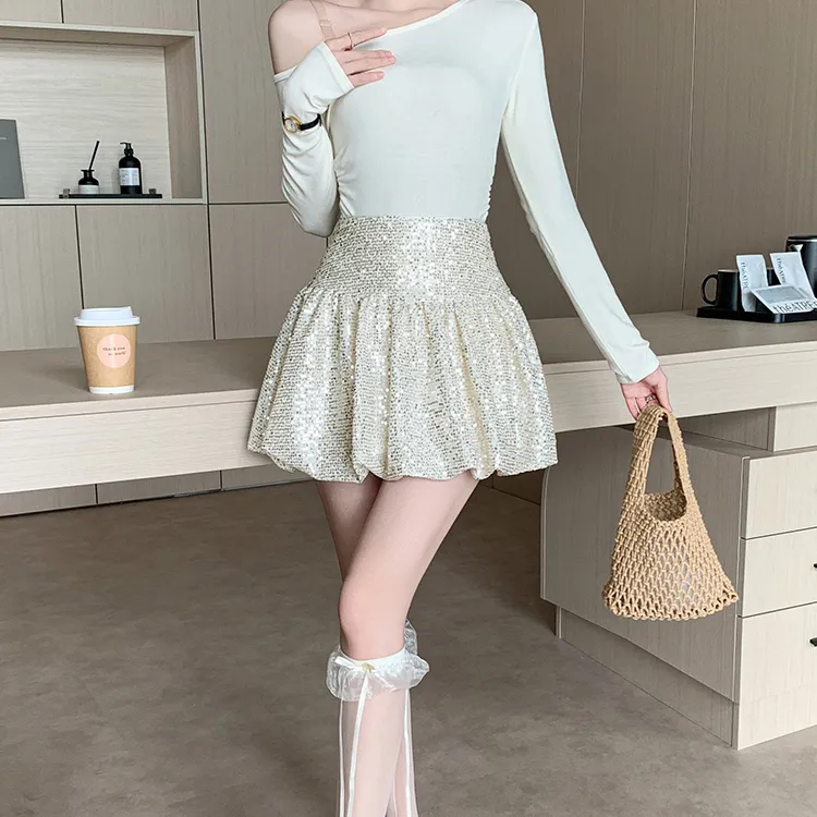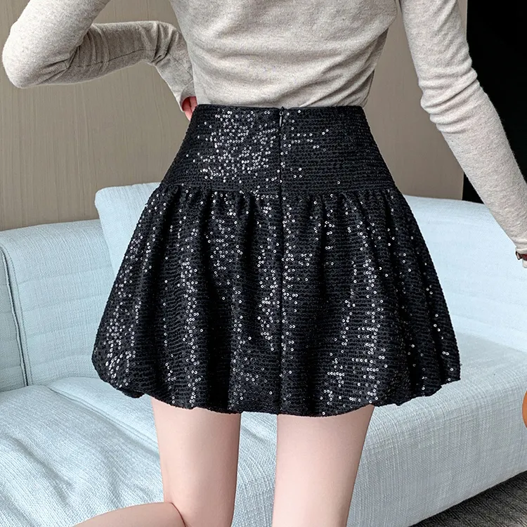 HTHK Повседневные короткие юбки Женские Черный Белый Золото