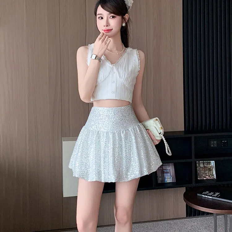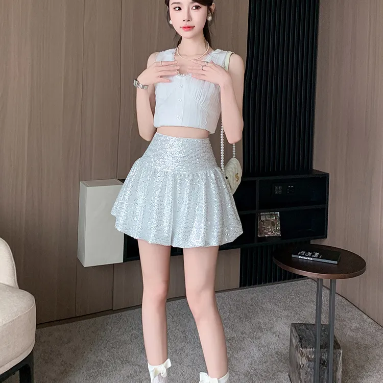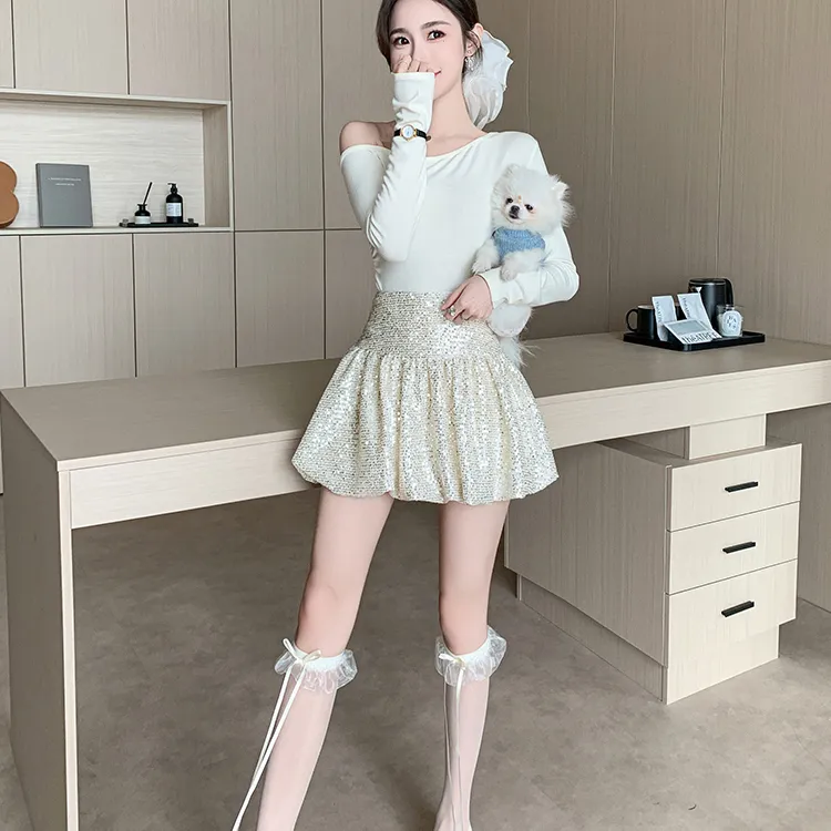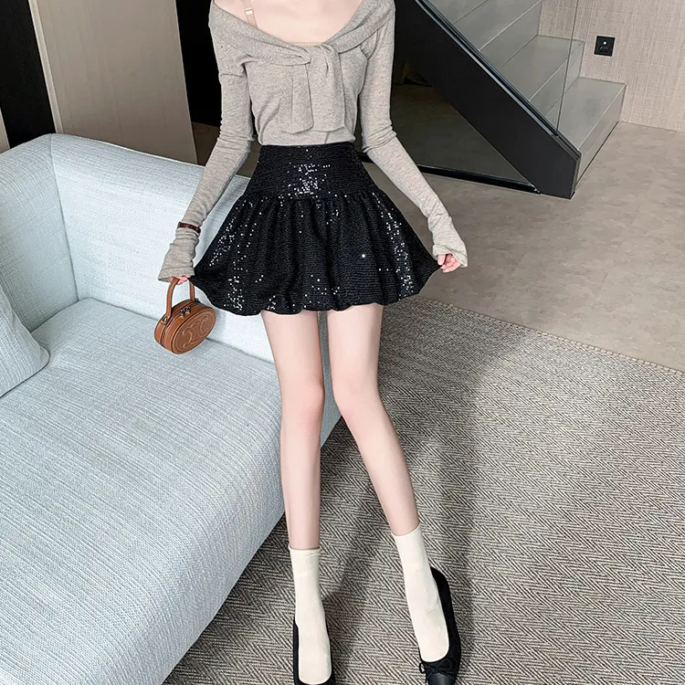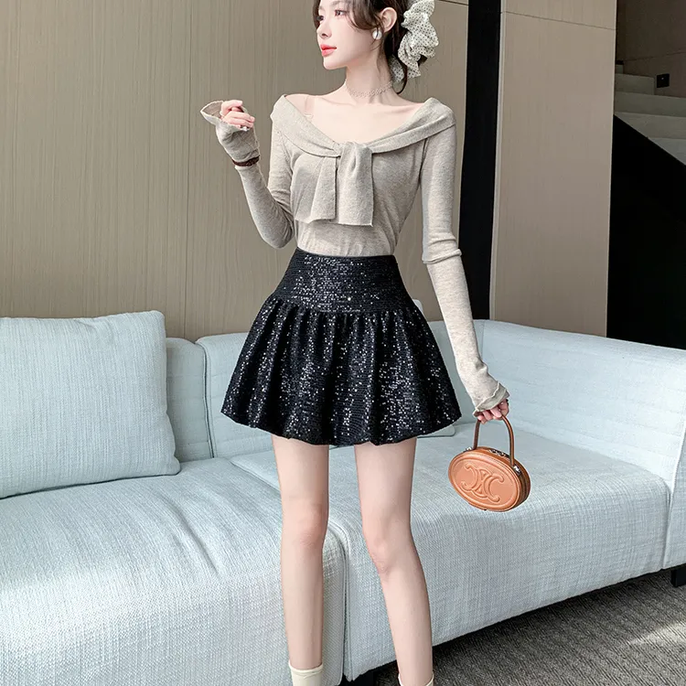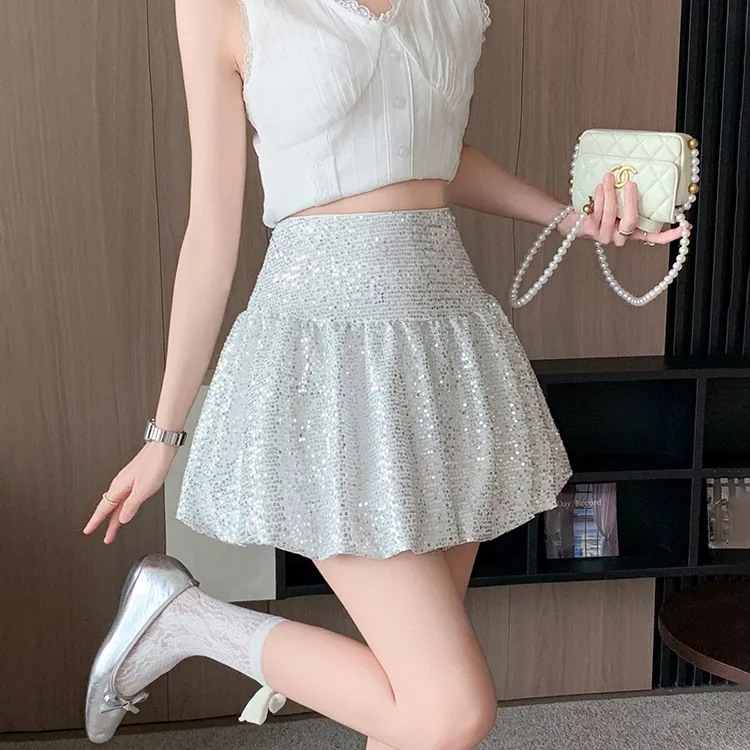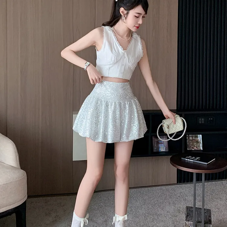 HTHK Повседневные короткие юбки Женские Черный Белый Золото