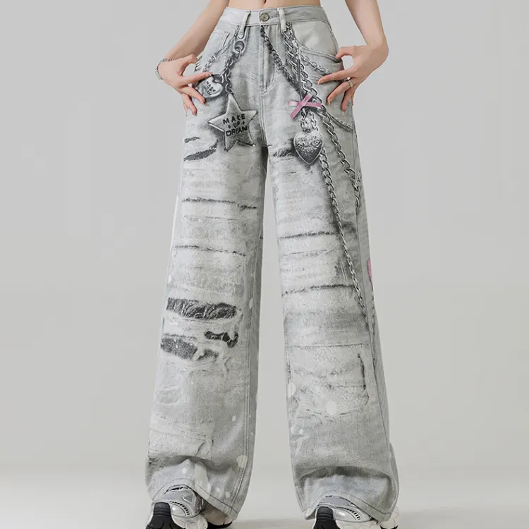 HTHK Scrap Серый Женские Джинсы