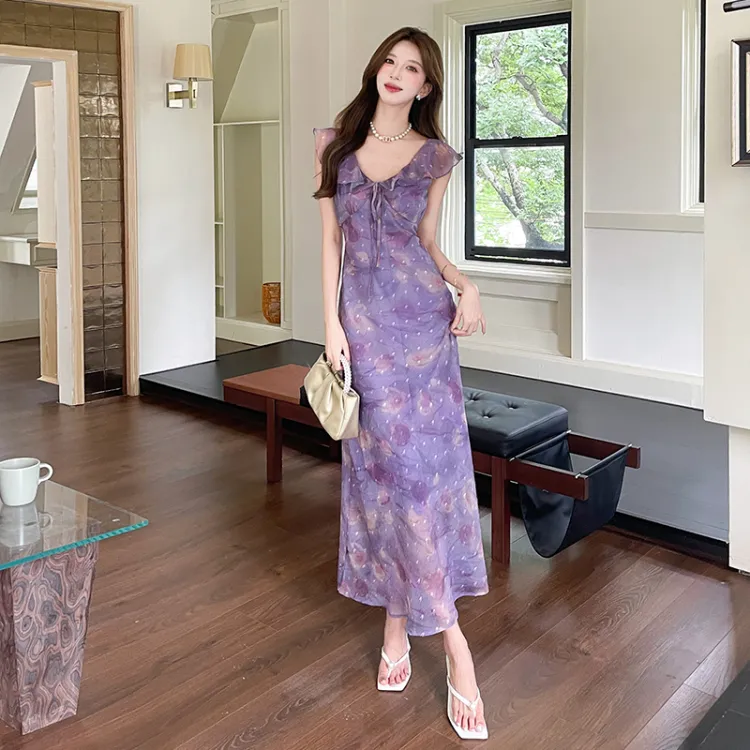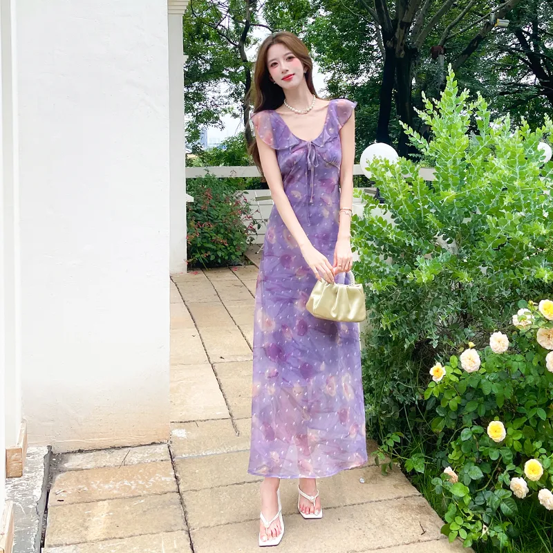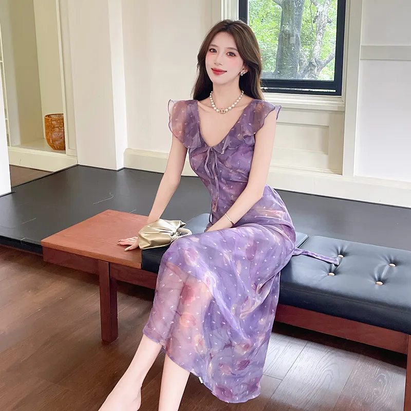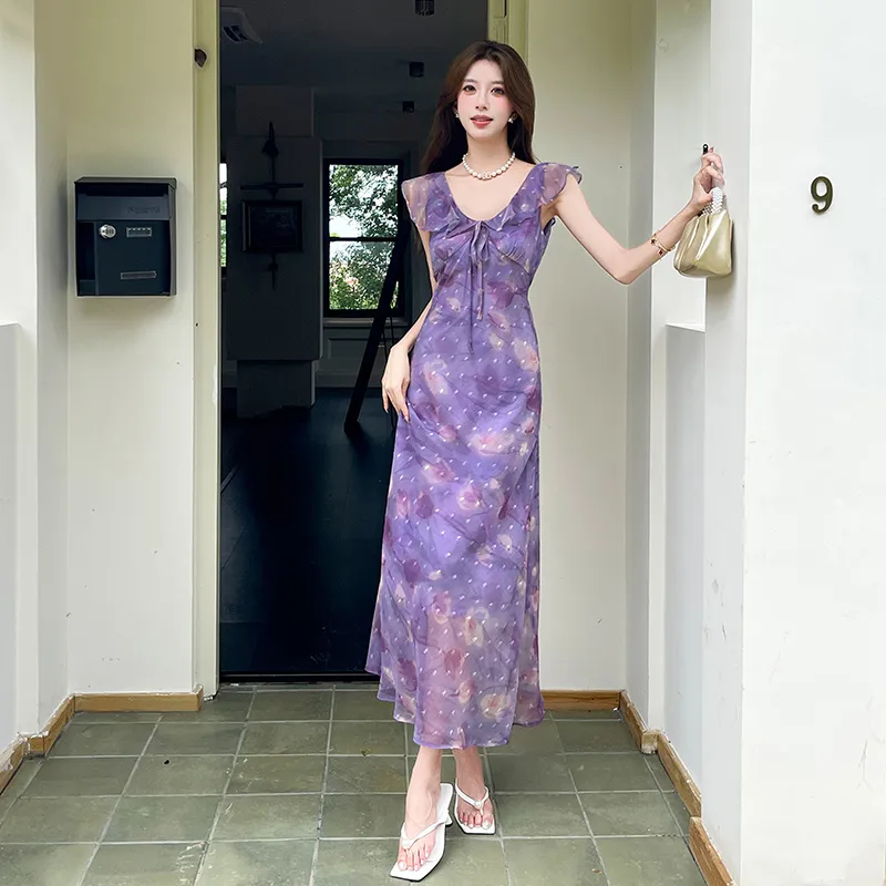 HTHK Тюльпанно-фиолетовый Женские Платья без рукавов