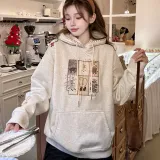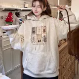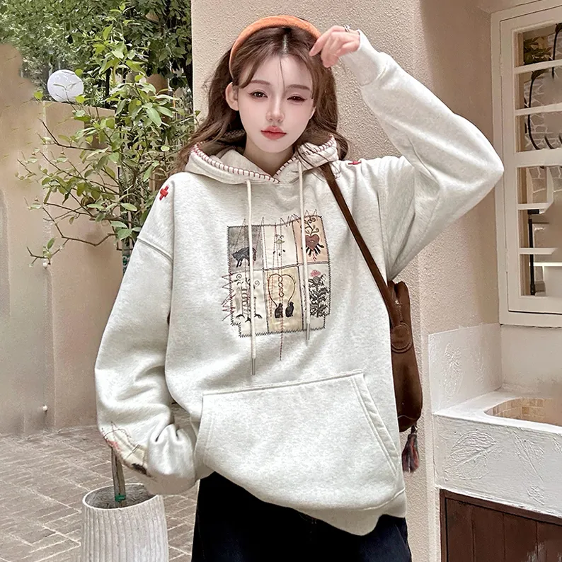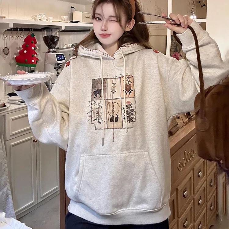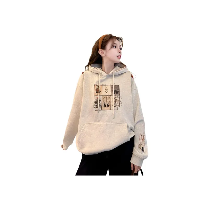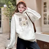 HTHK Белый Серый Флис с Подкладкой Женские Свитшоты