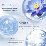 Вода, Глицерин, Сорбитол (Caramel Brown Alcohol), Этилаурет стеарат, Гидрогенизированный сополимер изобутен-изопрен, Вазелин, Бутиленгликоль, Полидиметилсилоксан (PDMS), Полисорбат-60, Глицерин стеарат, Гексаметилциклотетрасилоксан, Пальмитиновая кислота, Фенол Этиловый спирт, Стеариевая кислота, Сорбитан моностеарат, Цетиловый спирт, Триэтиленамин, Пчела Парафин, ПЭГ-100 стеарат, Полипропиленовые амиды, Карбомер, Метилпарабен, Пропиленгликоль, Цетилглюкозид, C13-14 Изопарафин, Фенилэтаноламин, Этилгексилгликерин, Суть, Токоферол ацетат, Этилендиаминтетрауксусная кислота, Полиглицерил-3, Соль гиалуроната, Лаурет полиэтилен-7, Пироидон Карбоксиловая Кислота, Токоферол (Витамин E), Египетская Голубая Вода Лилия (Nymphaea Caerulea) Цветочный Дизайн Экстракт, П-Гидроксиефирфенон
