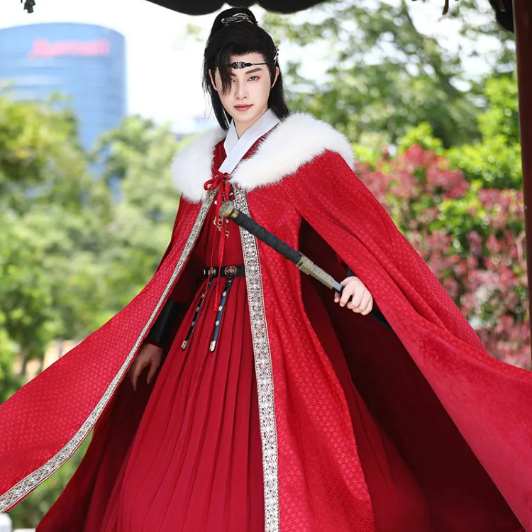 Huan Feather Красный Плащ Мужской Ханьфу