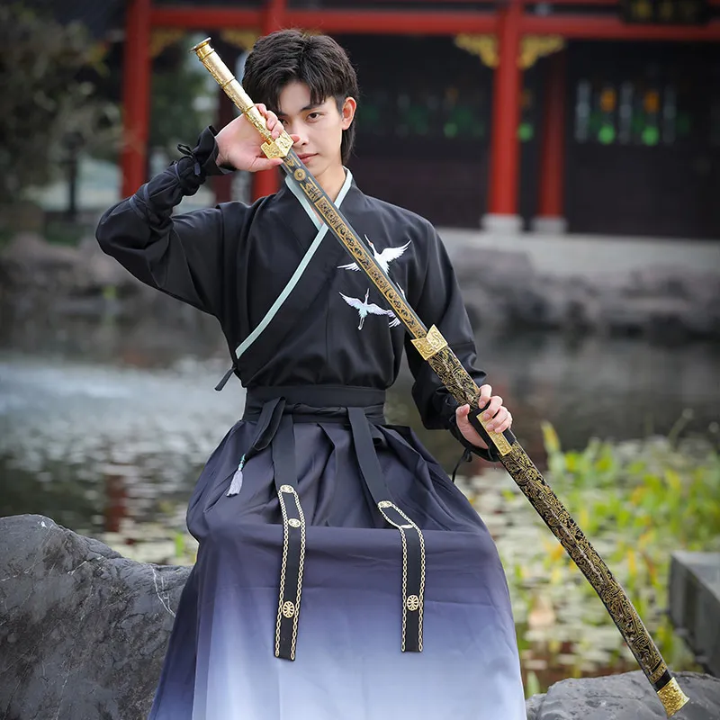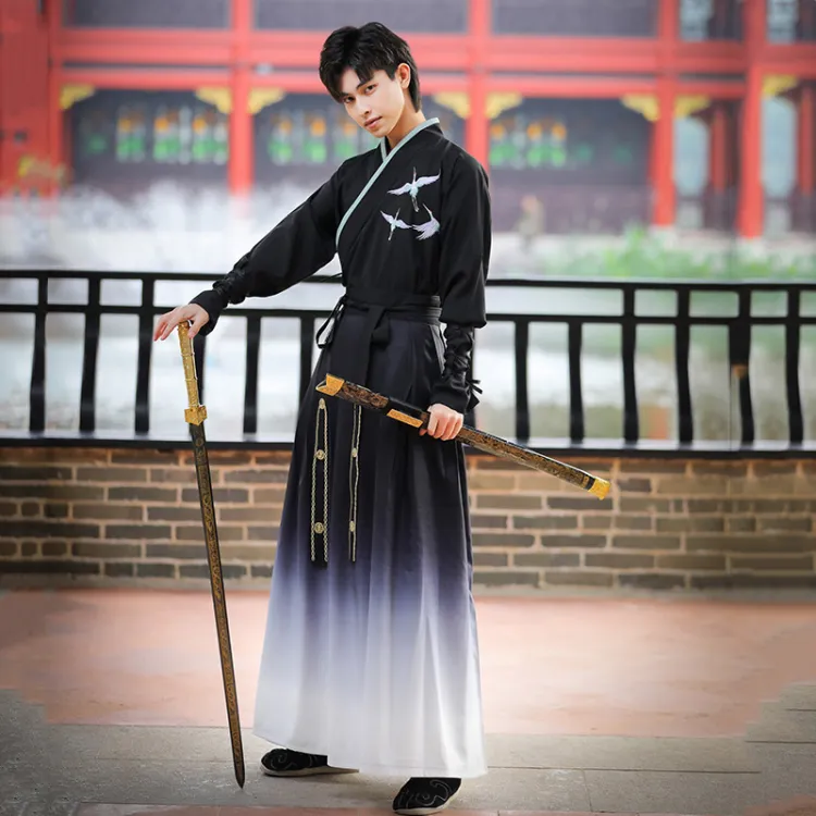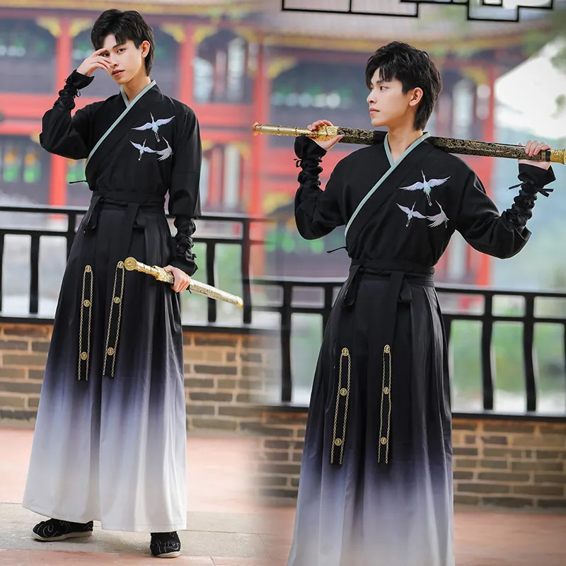 HUANLINGSI Черный Мужской Ханьфу