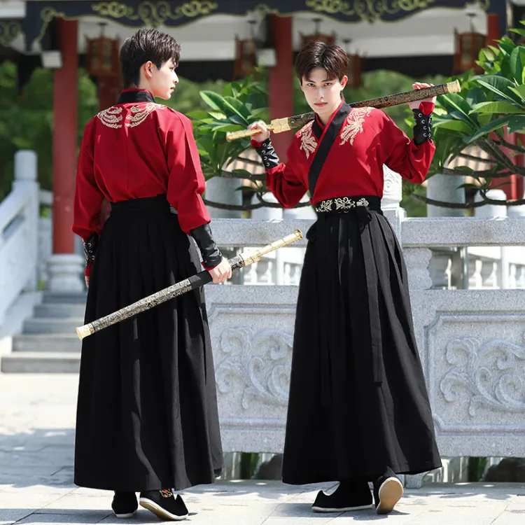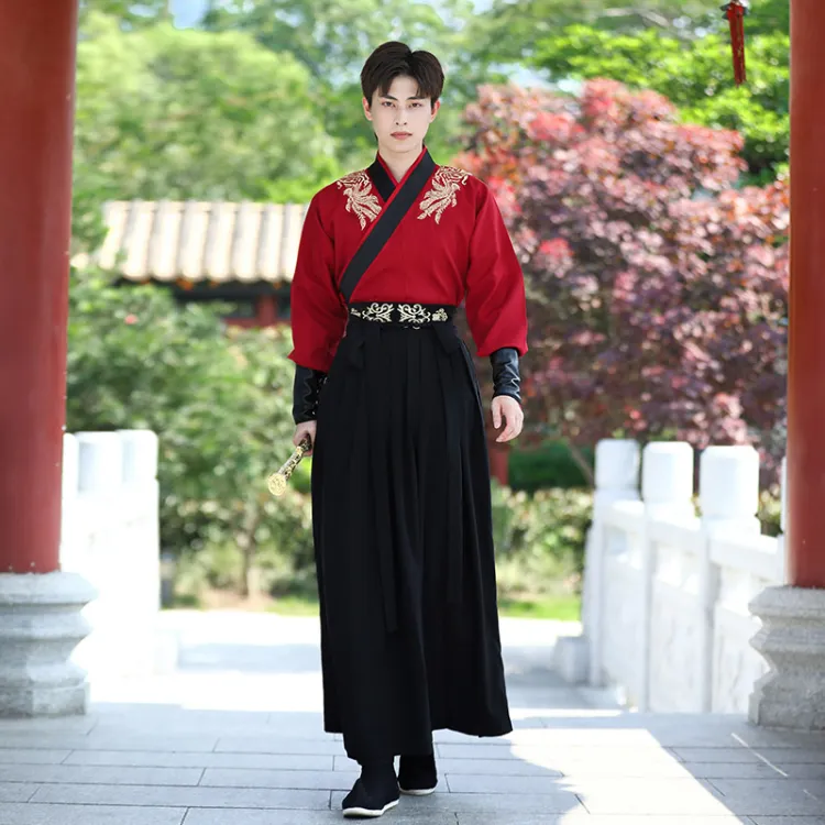 HUANLINGSI Красный Черный Мужской Ханьфу