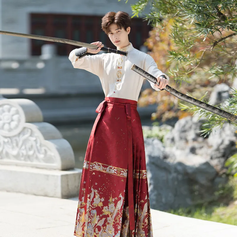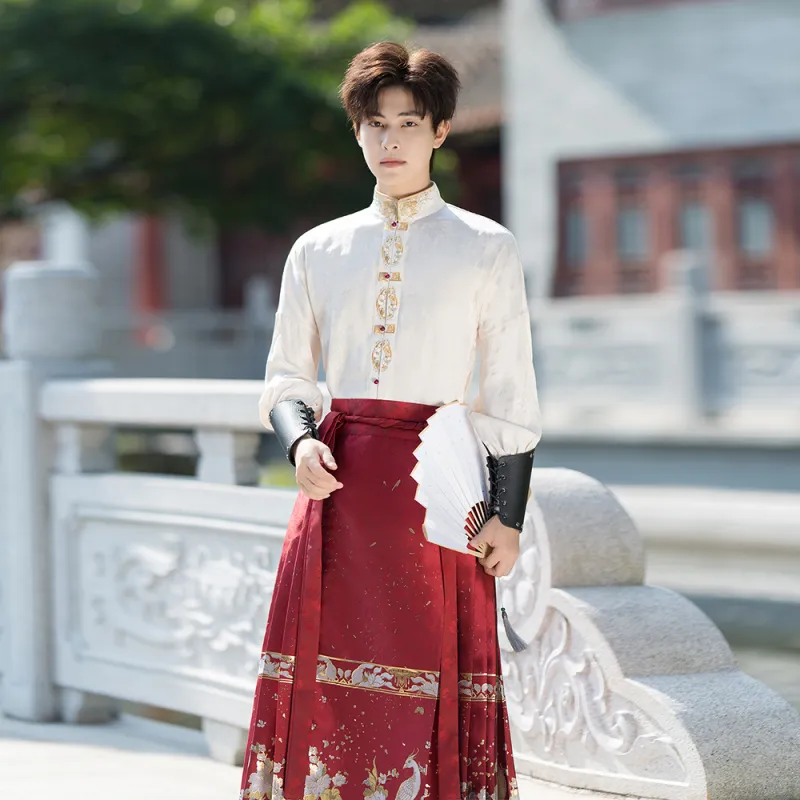 HUANLINGSI Ткани вязаные Золотой Топ Юбка+Браслет Унисекс Ханьфу