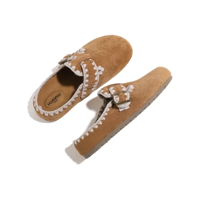 HUANQIU ПВХ Флок Ткань Вязаная Застежка Обувь Женская