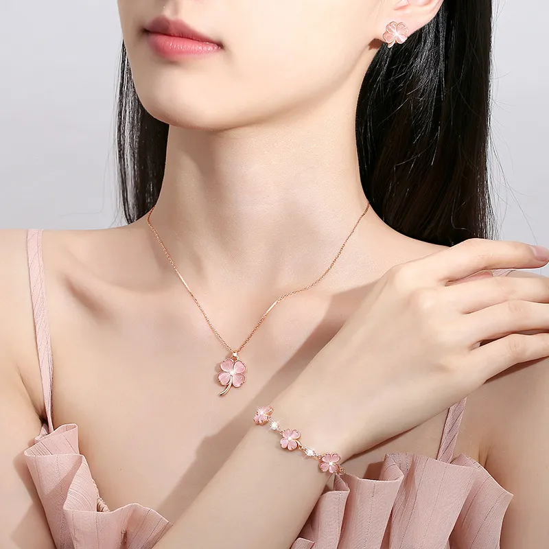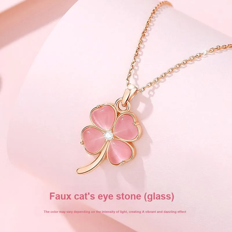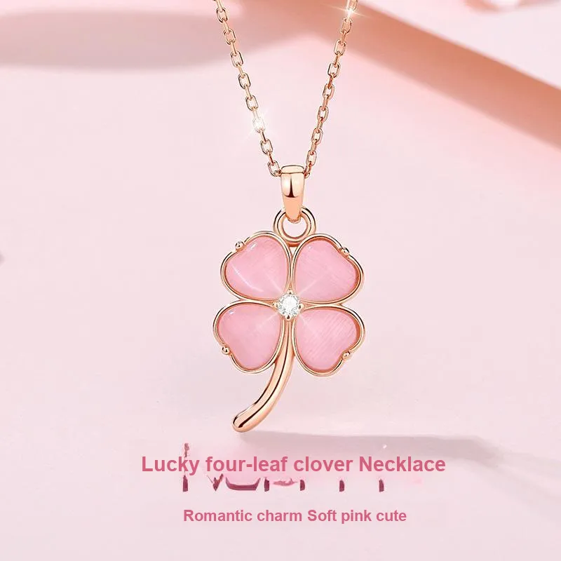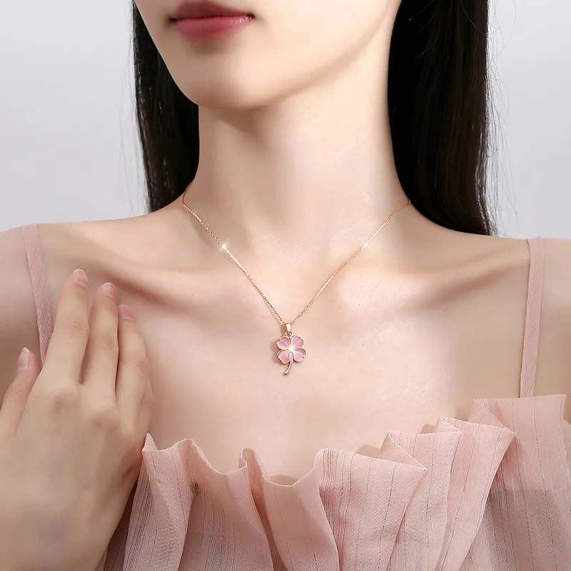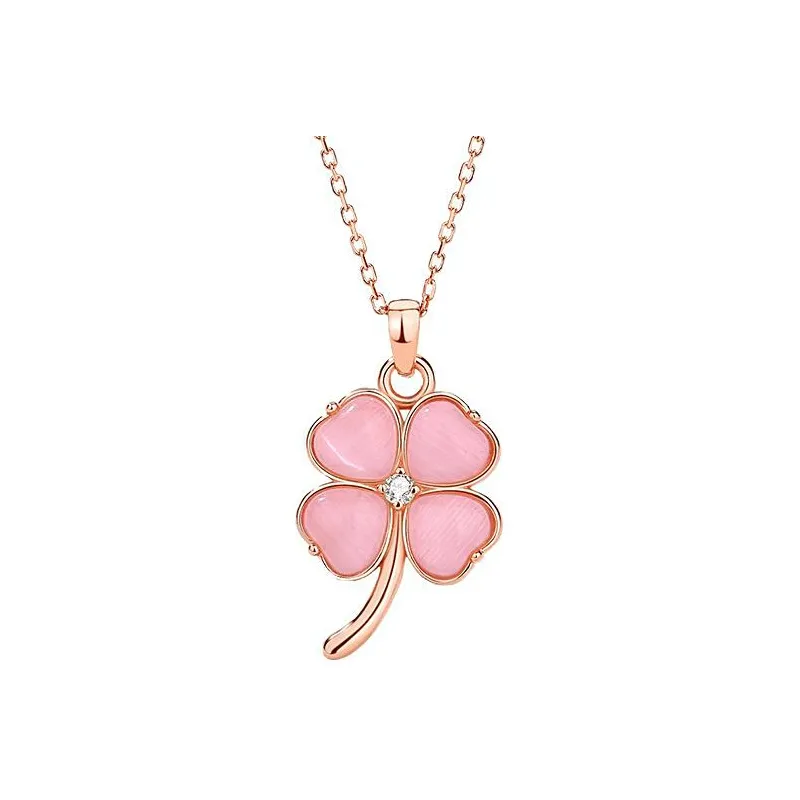 Стиль:Счастливый Розовый с Четырехлистным Клевером Сердце Ожерелье