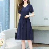HUASJ Короткий рукав Платье Женское Темно-синий