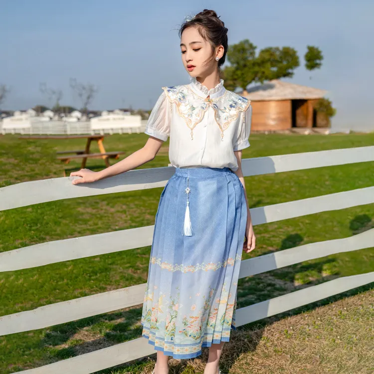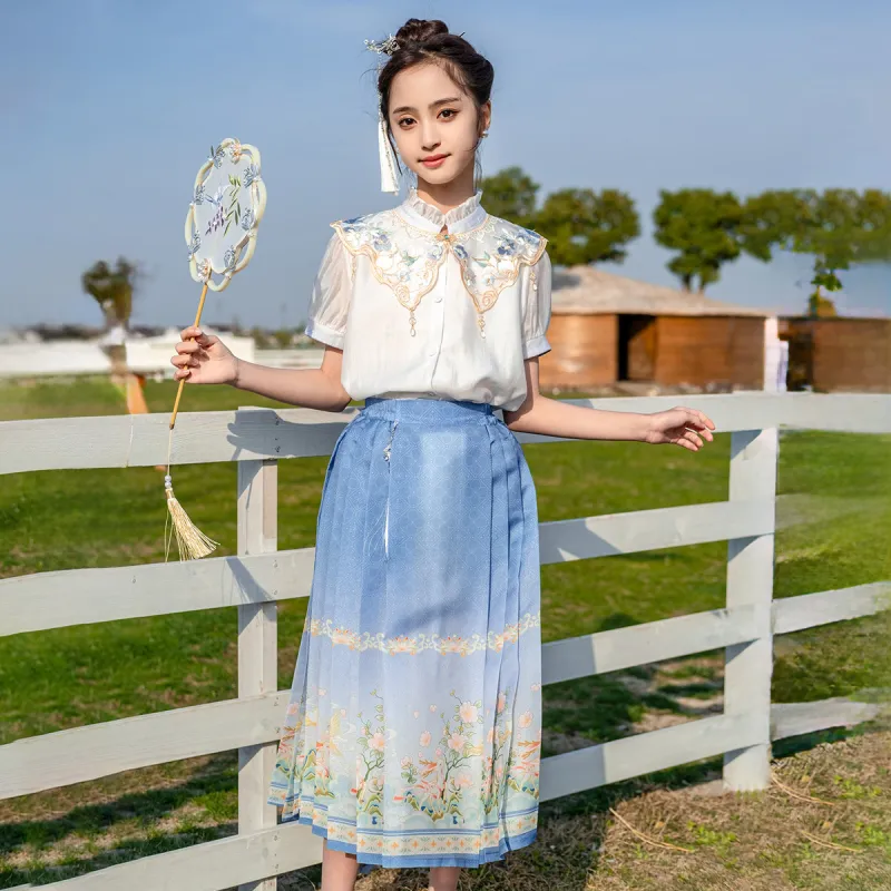 Huatianc Синий Школьный возраст Ханьфу
