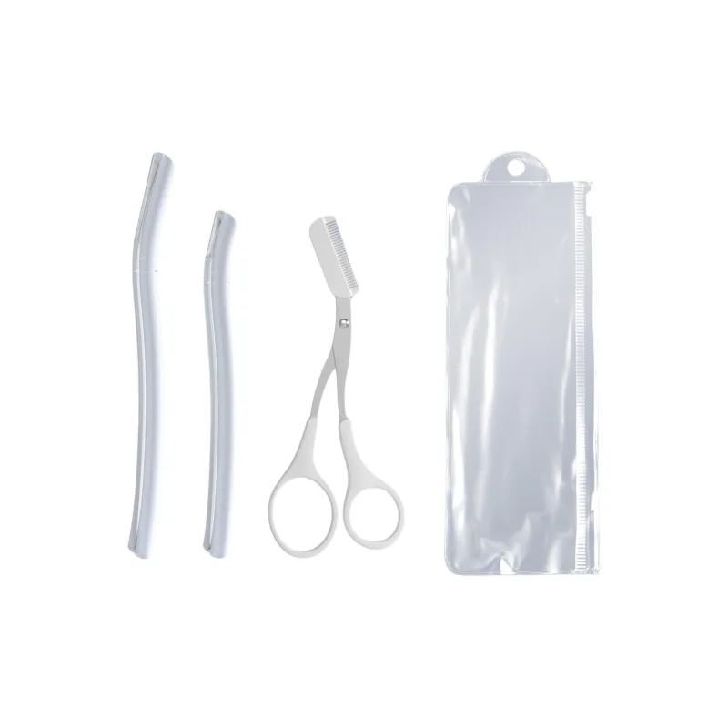 Прозрачный короткий ручка + прозрачный длинный ручка + белая кисть для бровей ножницы